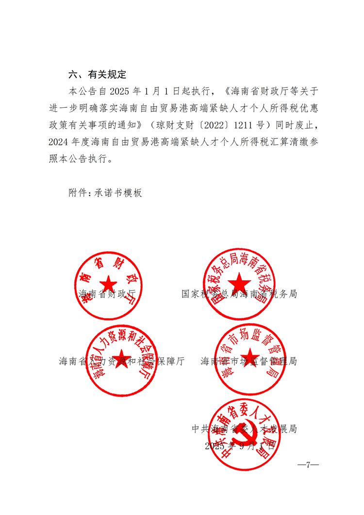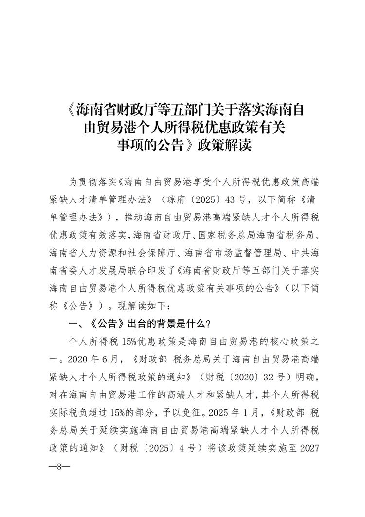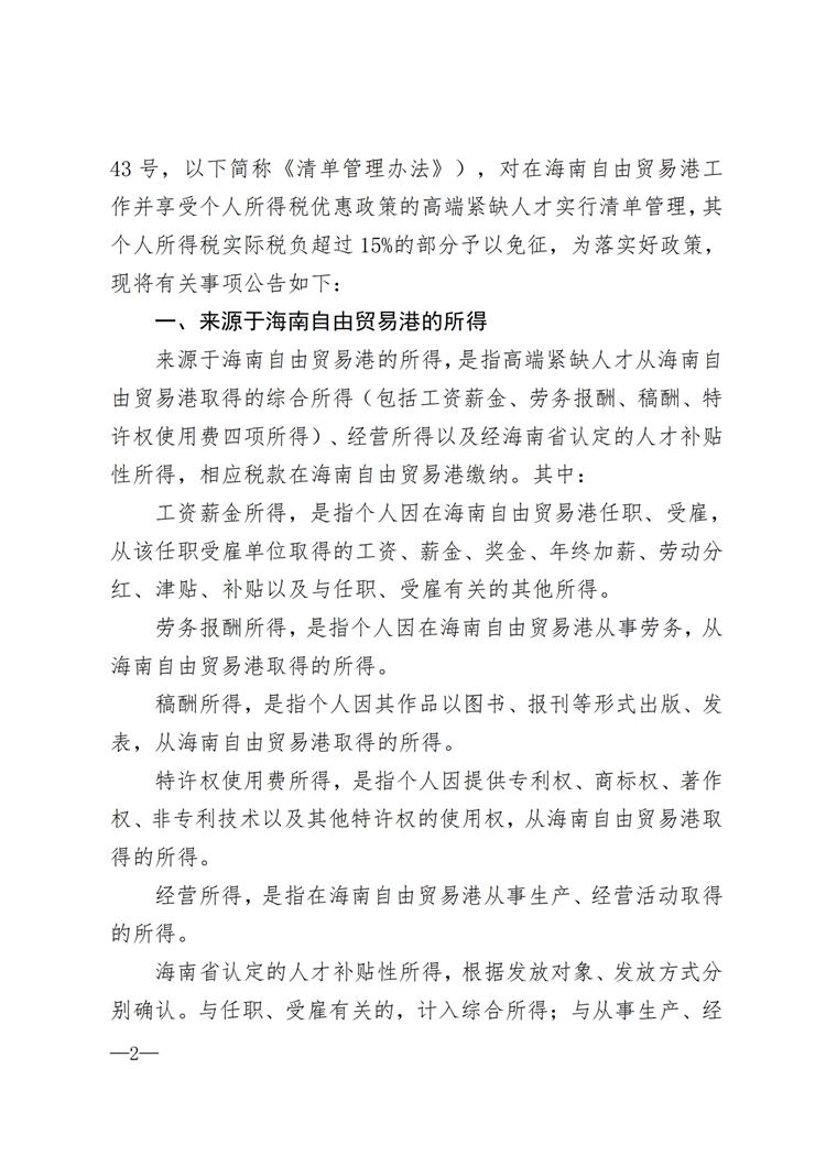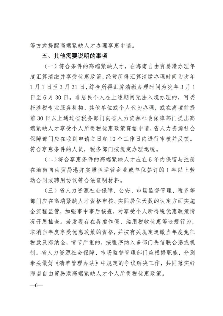 海南省财政厅等五部门关于落实海南自由贸易港个人所得税优惠政策有关事项的公告