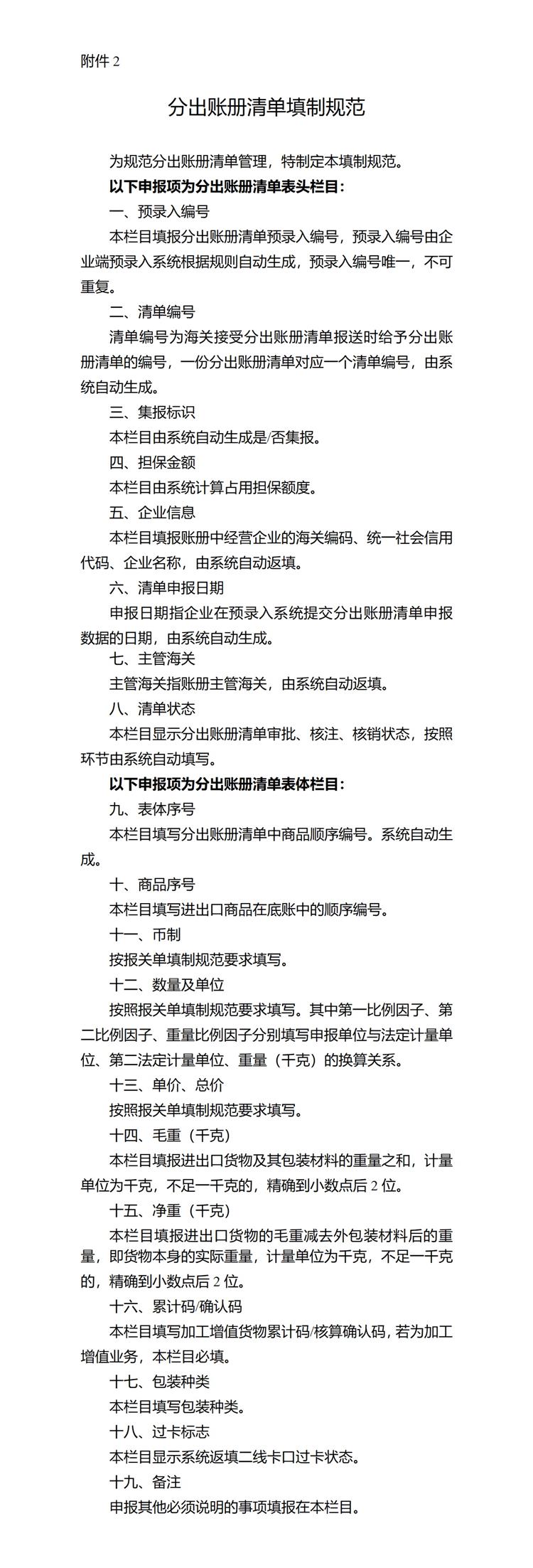 二、办理账册货物进出境、进入内地、海南自由贸易港内企业间流(结)转业务的,相关企业应按照账册清单设定的格式和填制要求向海关报送账册清单数据信息,再根据实际业务需要办理报关手续(账册清单填制规范详见附件)。