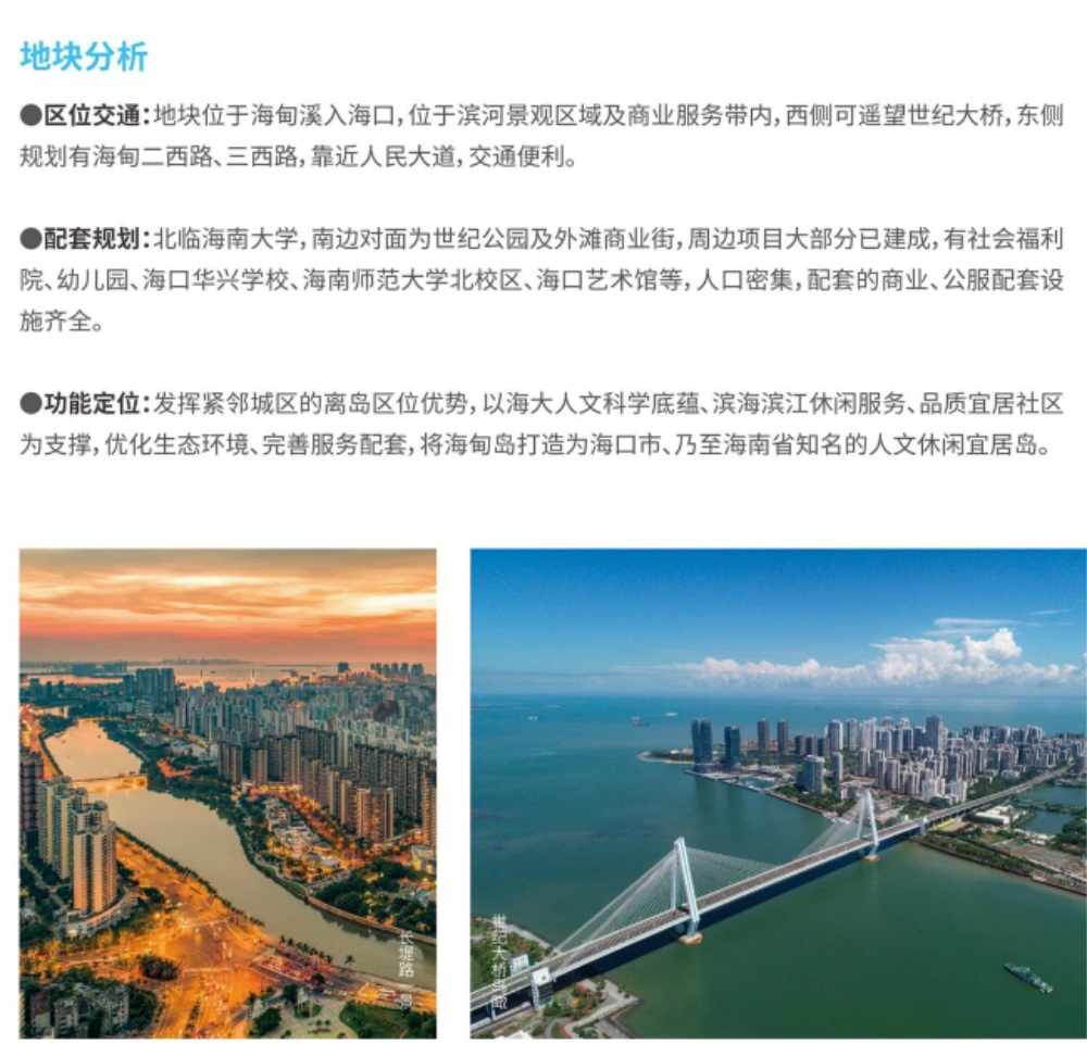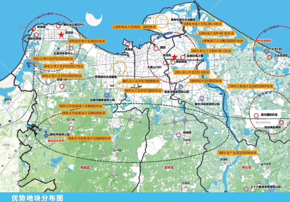 根据通知,此次海口将推介内容,由优势地块、城市更新地块、片区开发地块三类用地组成,涉及金沙湾片区、西海岸南片区、海甸岛片区、大英山片区、旧城片区、南渡江片区、府城片区、滨江新城片区、云龙产业园片区、美安科技新城片区、药谷片区、丁村、迈瀛、长流等20多个片区。