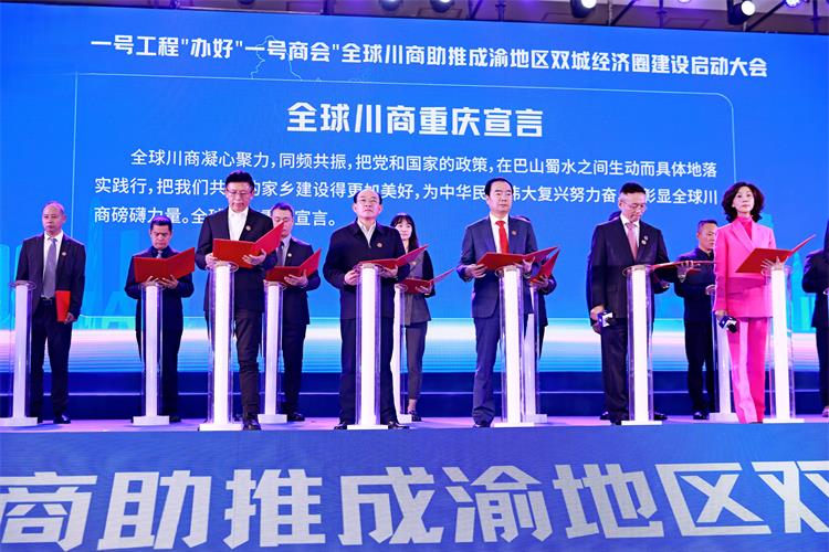 2024年1月9日,由重庆市四川商会主办的,全球川商助推成渝地区双城经济圈建设启动大会,在南坪国际会展中心举行。全球川籍商会以及成渝两地友好商协会共100多家社会组织、650名企业家齐聚山水之城,共同探讨全球川商如何共同助力成渝地区双城经济圈建设,并发布了全球川商重庆宣言。重庆四川商会第四届领导班子在大会上举行了隆重的就职典礼。