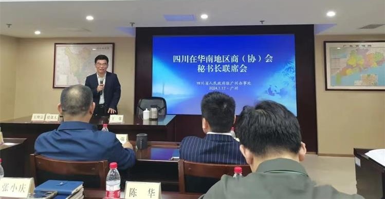 2024年1月17日,由四川省人民政府驻广州办事处主办的“四川在华南地区商(协)会秘书长联席会”会议在广州举行,广办二级巡视员王强主持会议并讲话。来自广东、广西、云南、海南4省(自治区)50余家川籍商协会秘书长参加。我会秘书长赵德钦参加了此次会议。
