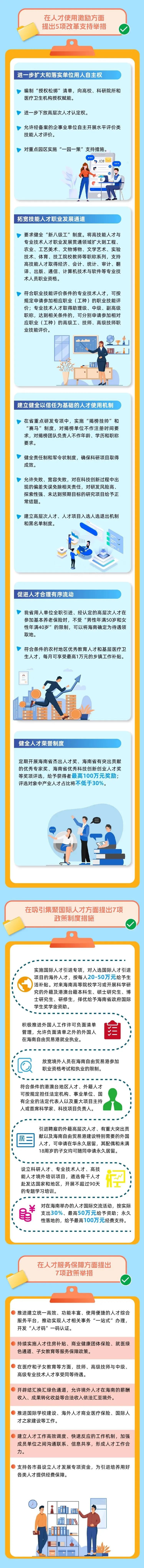 近日,省委人才工作领导小组发布《海南自由贸易港全方位引进培养用好人才的若干政策措施》,从人才引进、人才培养、创新创业支持、人才使用激励、国际人才管理、服务保障等六个方面提出二十六条政策措施,对全省人才政策进行了全面优化升级、系统集成创新。主要内容如下: