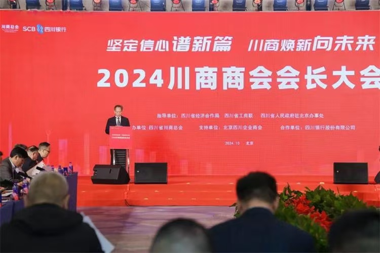 10月24-25日,在省经济合作局、省工商联、省政府驻京办指导下,由川商总会主办,北京四川企业商会支持的2024川商商会会长大会在北京圆满举行。省经济合作局党组书记、局长李江,省政府驻京办党组书记、主任杨志远,省工商联党组成员、副主席郑宗强,川商总会会长、新希望集团董事长刘永好出席活动。本次大会以“坚定信心谱新篇,川商焕新向未来”为主题,全国四川(川渝)商会会长、党组织书记、秘书长近100人齐聚北京,共谋商会事业发展大计。执行会长何鑫代表商会赴北京参加。川商总会党委副书记、执行秘书长唐俊主持大会。